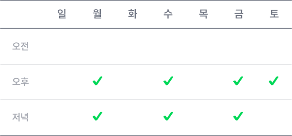 위와 같은 다양한 구성으로 수업이 진행되며, 수업 중 사진 및 영상, 운동일지 등 꼼꼼한 피드백으로 개인운동도 쉽게 진행하실 수 있습니다.:)