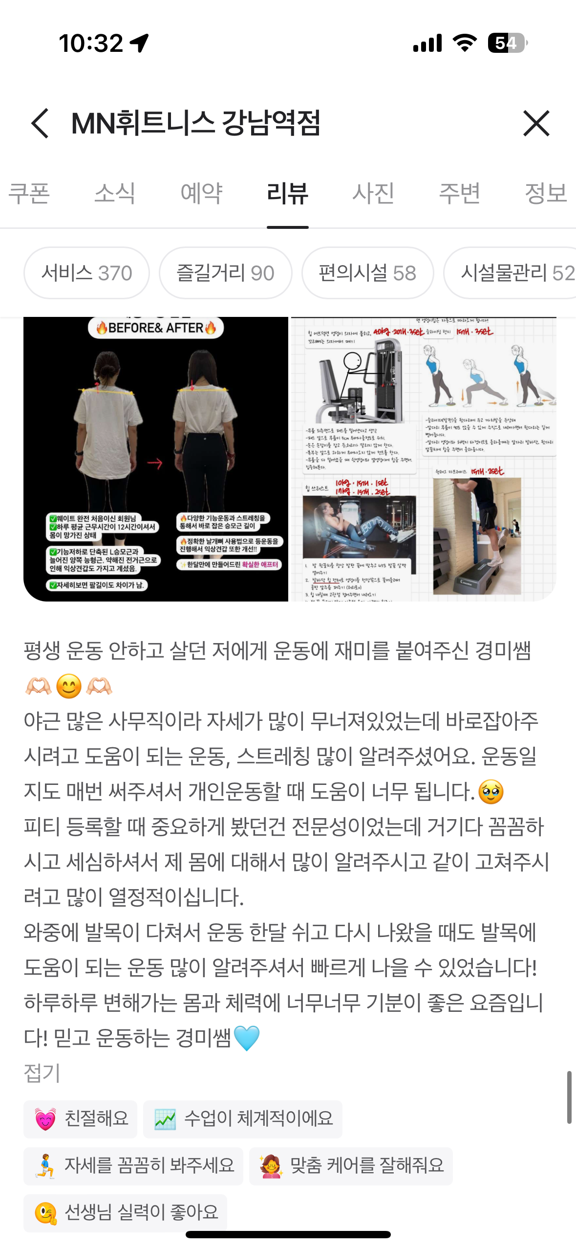 하지만 저는 첫 상담부터 꼼꼼하게 회원님들 니즈를 파악하고 스타일에 맞춰드릴 수 있게 노력하기 때문에 웨이트와 친해질 수 있도록 도와 드리고 있습니다.