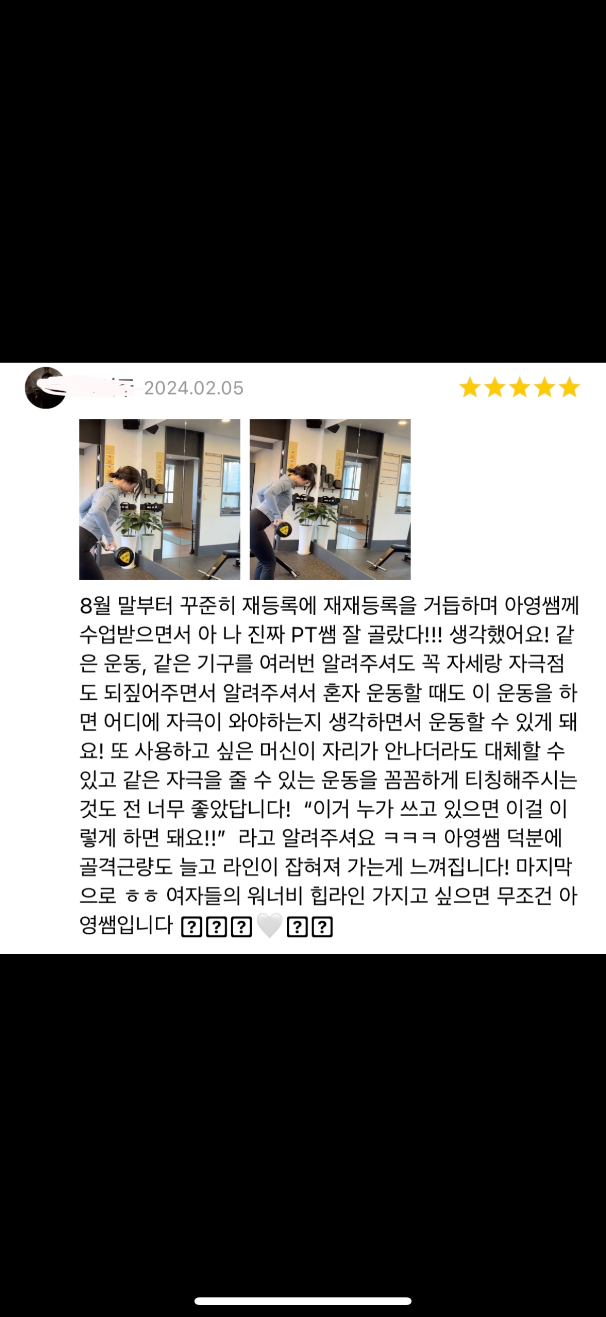 운동에 대한 거부감이 먼저 없고 재미있어야 꾸준히 하게 됩니다 그 부분은 저랑 수업을 하면서 직접 몸이 펴지고 재미있는 것을 느끼게 해드리겠습니다