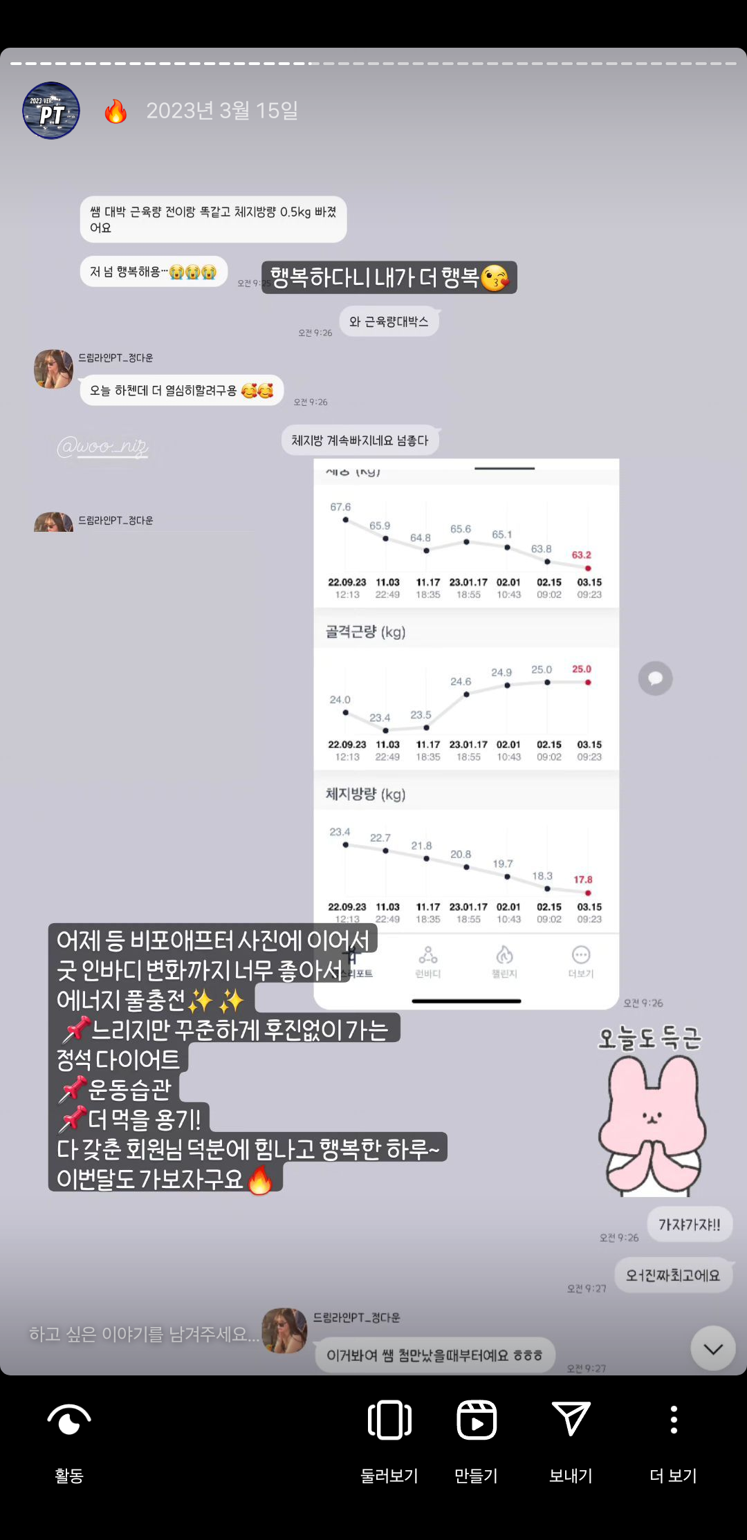 또 PT 수업 후엔 , 혼자 운동이 가능하실 수 있게 수업 내용을 정리해서 보내드립니다.