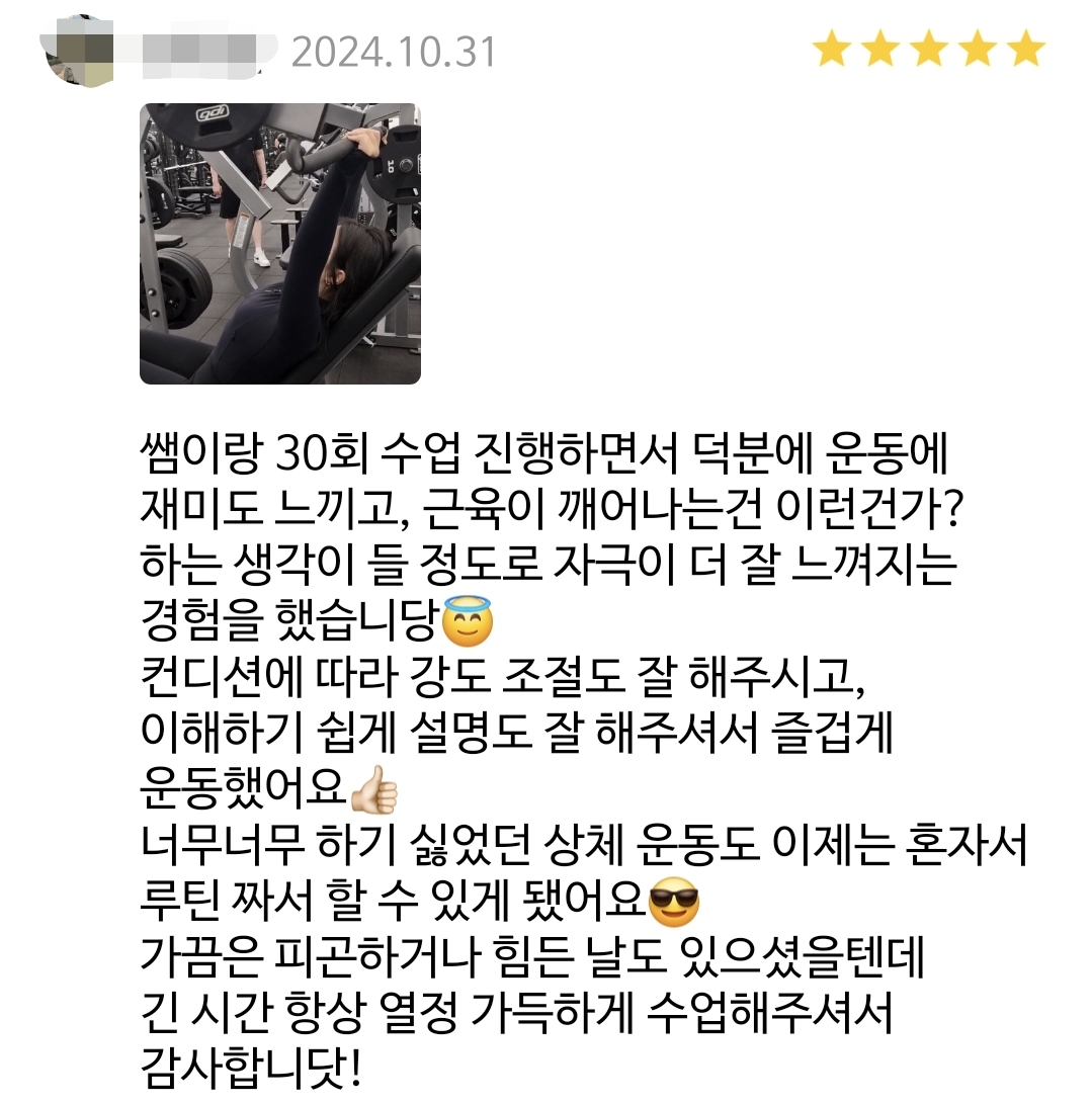 회원님의 몸 상태와 목표에 꼭 맞춘 트레이닝을 제공하겠습니다.
