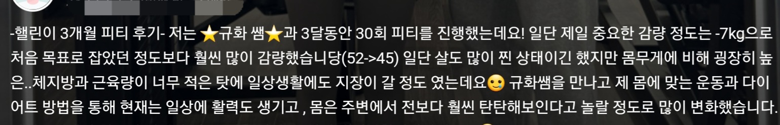 1. 운동 전 상담을 통해 회원님의 운동목적, 특이사항, 니즈를 잘 파악하여 수업진행 ➡️ 회원님의 운동에 필요한 정보를 통해 관리