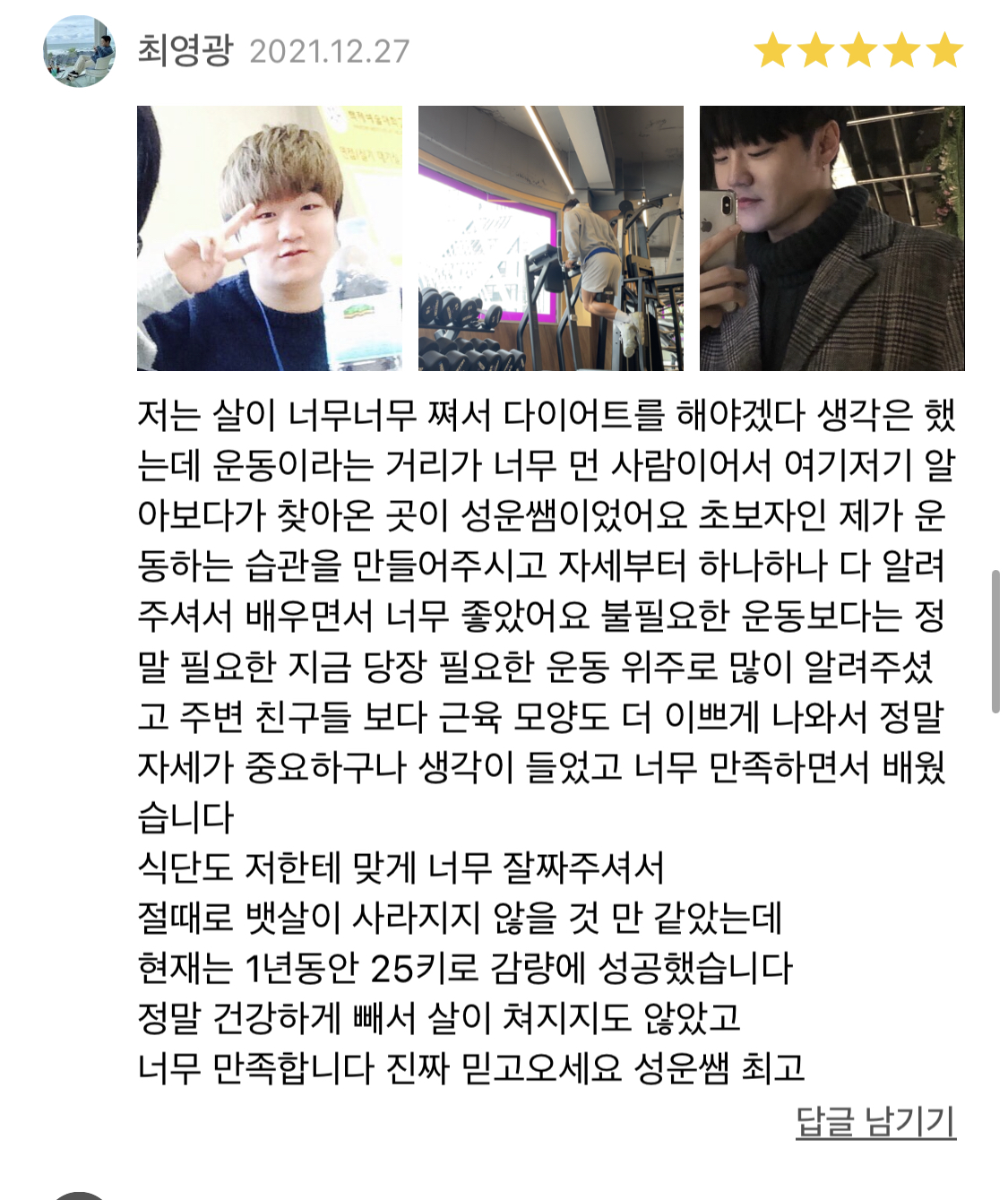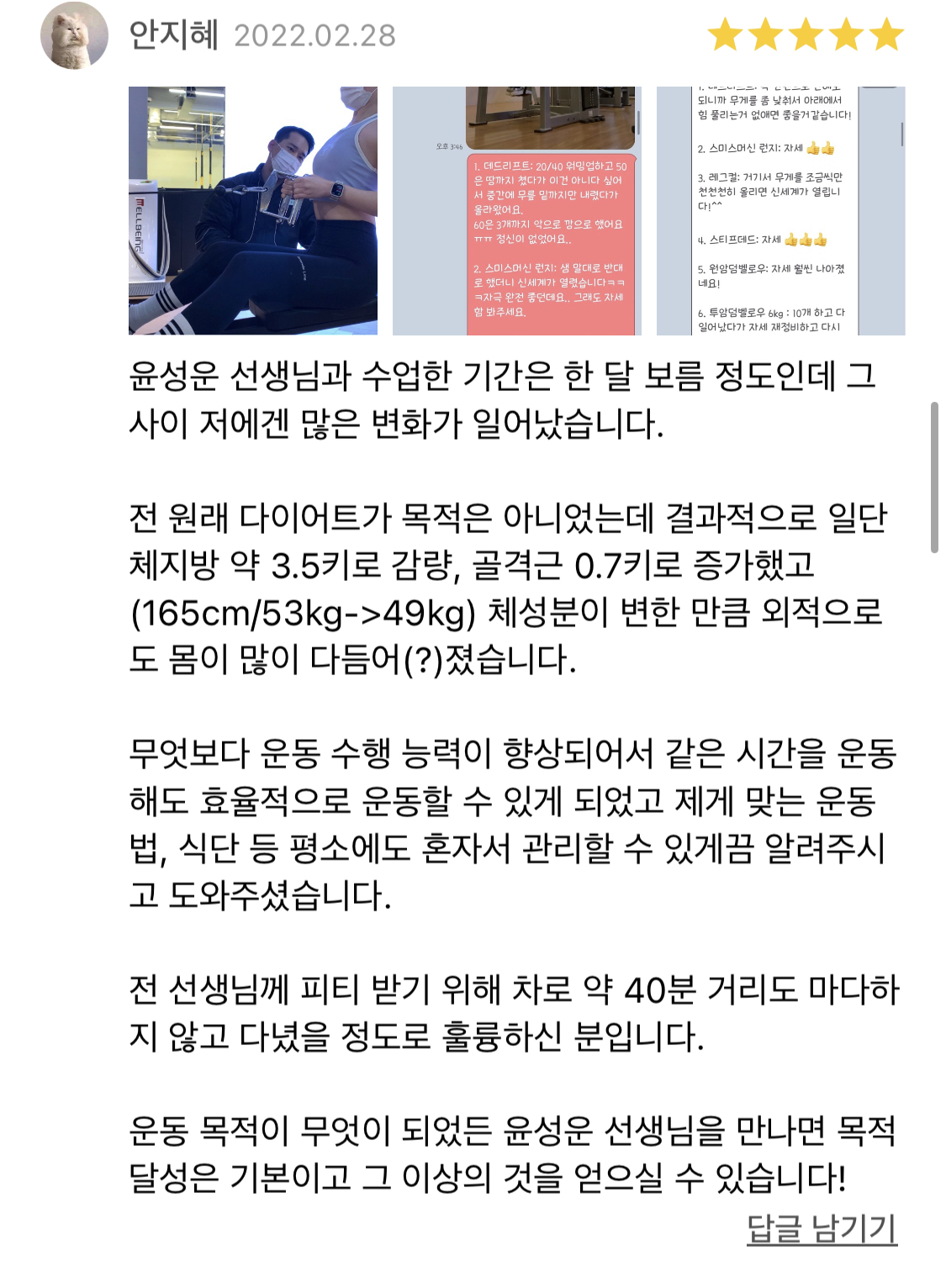 운동을 꾸준히 하게 만들어주는 트레이너 입니다.