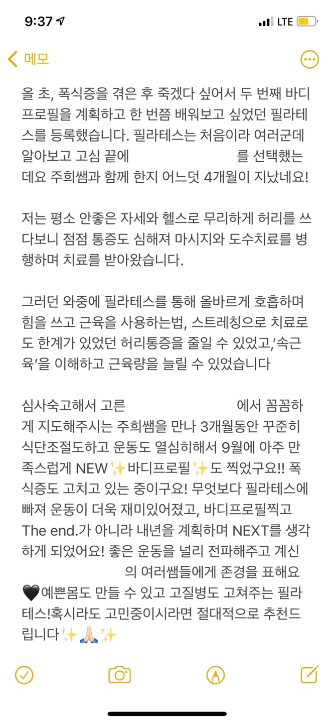 저는 필라테스를 고등학교때부터 쭉 해와서 저에게는 너무나 익숙한 운동이기도 합니다. 이 익숙한 운동을 운동을 좋아하지 않는 사람들, 또는 어려운 사람들에게 재미있게 가르치는게 제 첫번째 목표였고 지금도 그렇습니다.