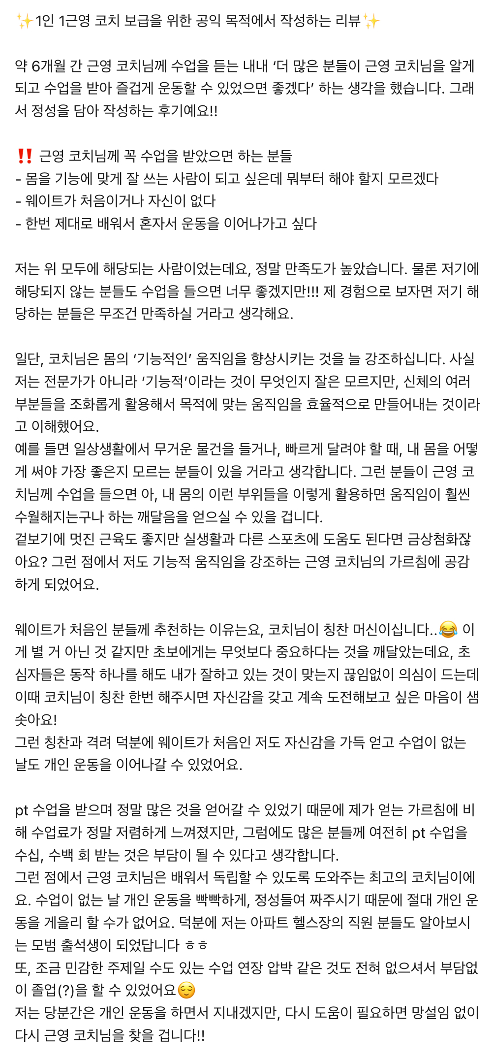 ✔️ 길고 꾸준히 운동할 수 있도록 부상방지를 최우선으로 합니다.
