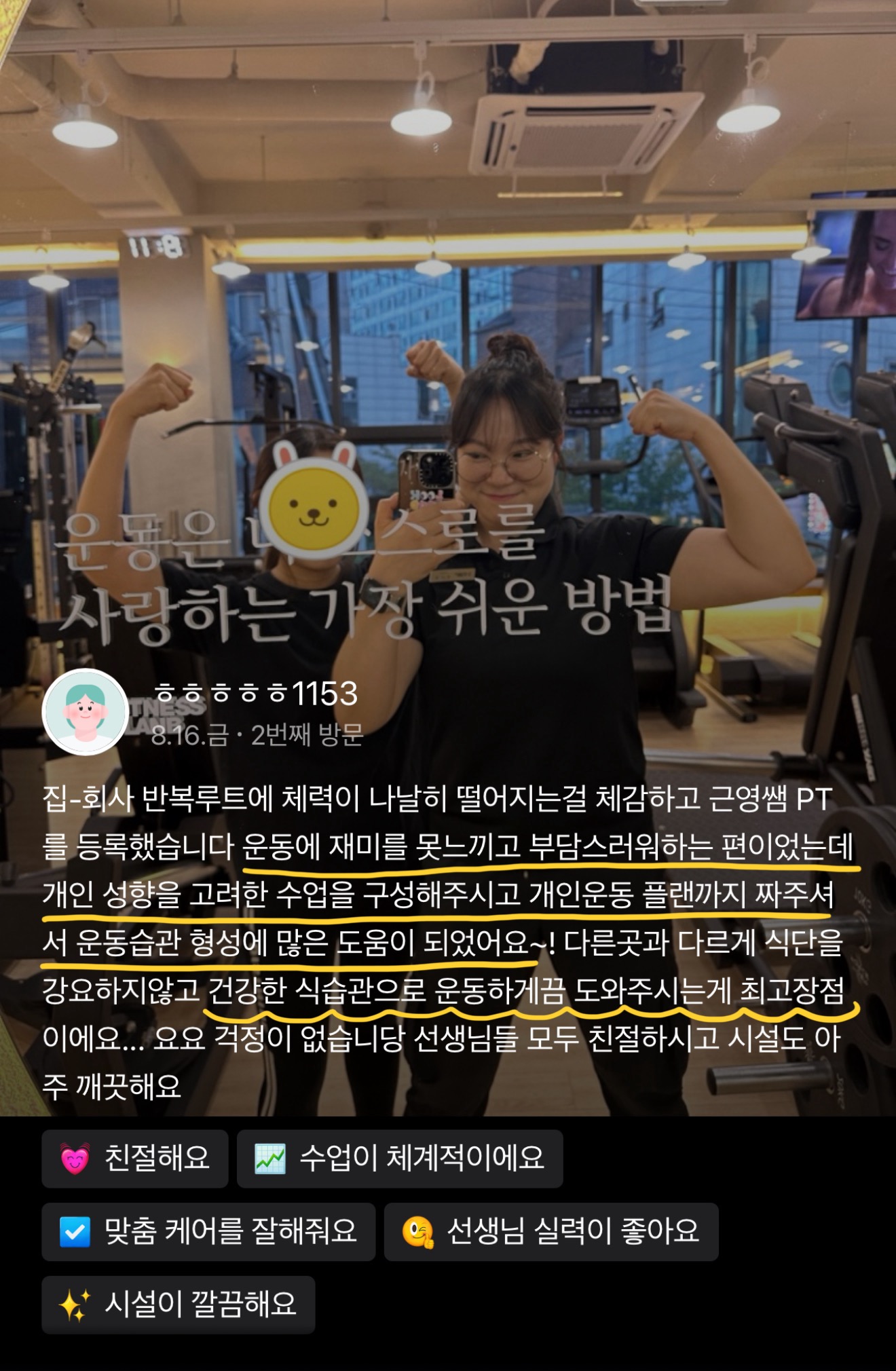 운동을 해낼 수 있다는 ‘성공 경험’이 반복되는 구조를 만들어드리고자 합니다.