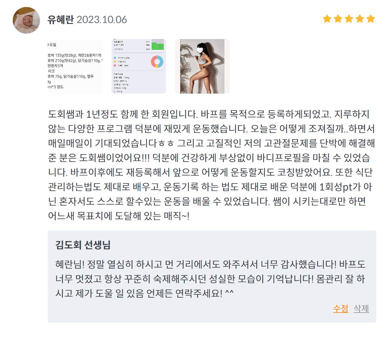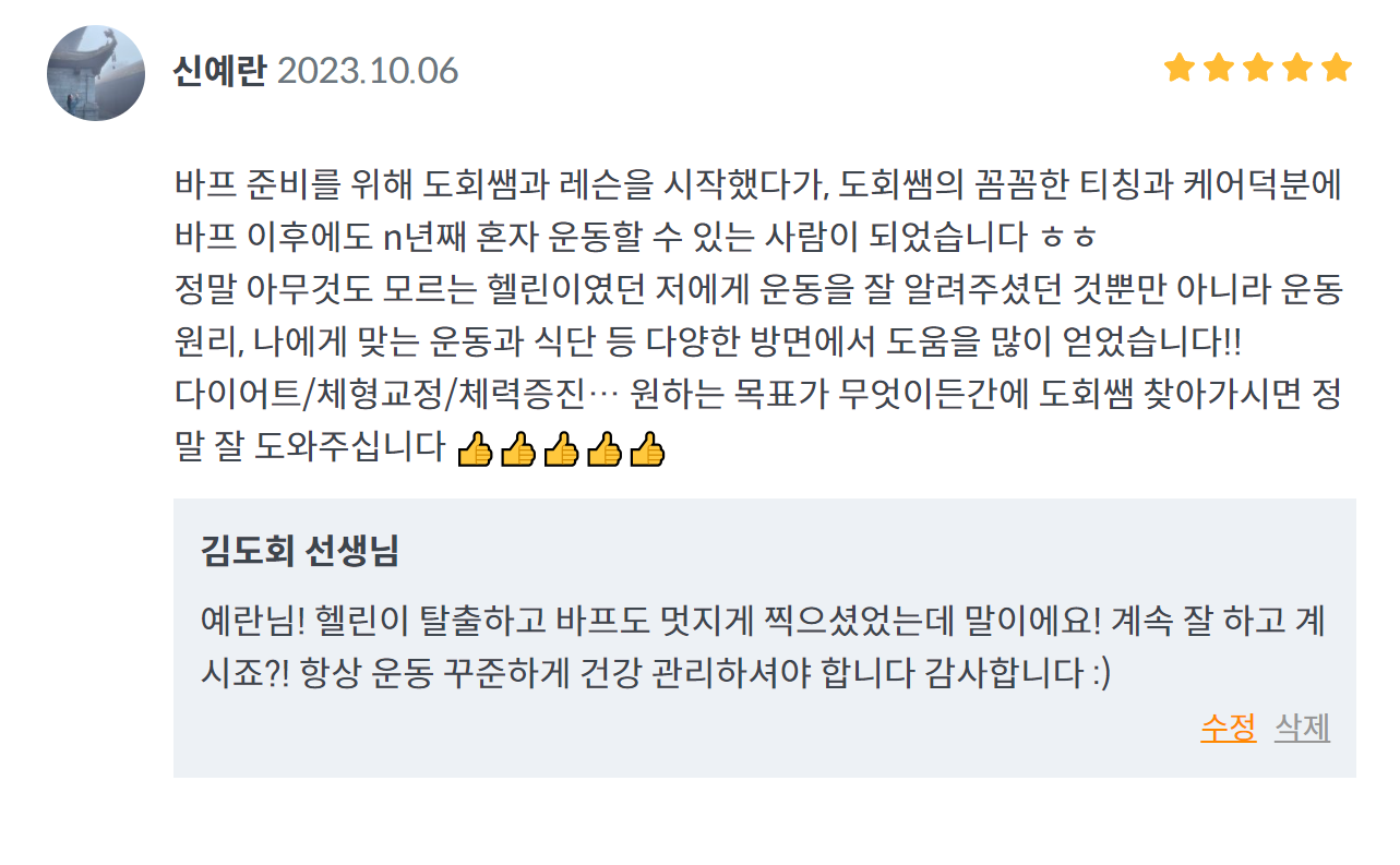 저를 믿어준 회원님들의 삶이 운동으로 인해 저처럼 변화가 생기셨으면 좋겠습니다.