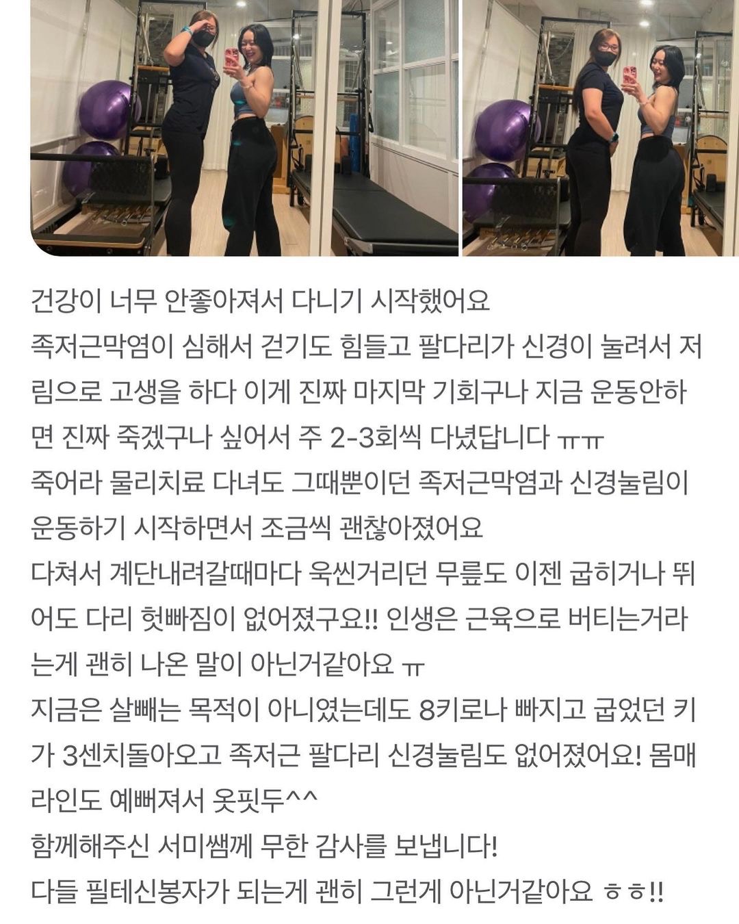 그 후 운동도 공부란 걸 깨닫고 본격적으로 제 몸을 스스로 돌보고, 극복하는 과정을 겪었습니다.